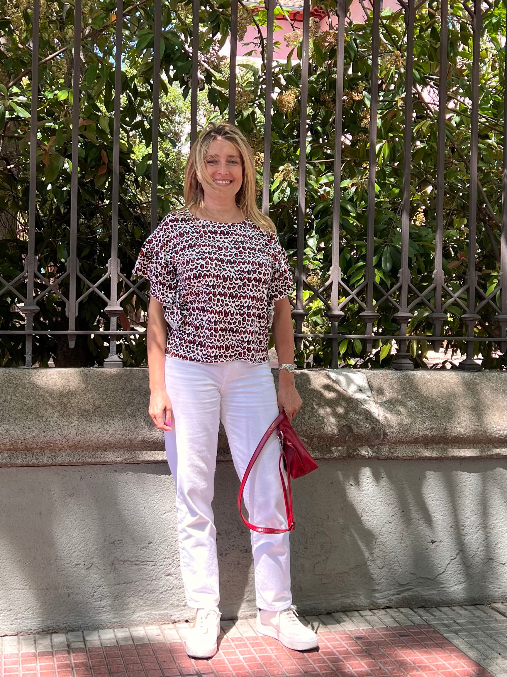 Our fluttery shirt is a warm weather statement shirt with eye-catching sleeves. The shirt has an oversized cut in the broad and just the right length to tack in the front. The pattern is designed for knit fabric, but for the flutter sleeves, you can use any kind of woven fabric, such as lace, tulle, double gauze, satin, chiffon, or whatever you have in mind.