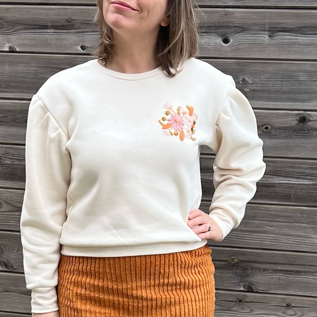 Our oversized billow sweatshirt is designed comfortably and has voluminous and eye-catching sleeves, which come in 2 lengths; you can choose between 1/2 or long sleeves. Furthermore, the sweater has trendy dropped shoulders and side seams that are slightly placed to the front.