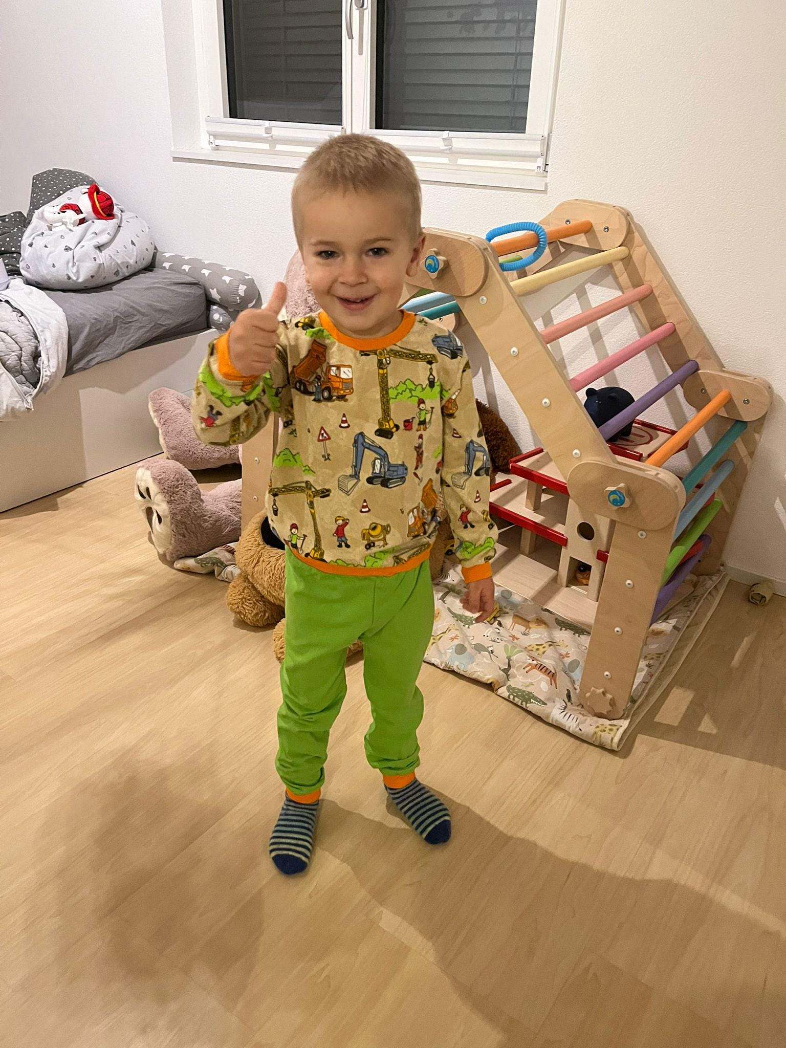 The pants come in 3 different lengths, and you can choose between a regular bottom hem or practical ankle cuffs. The long pants are designed slightly overlong; The idea is to keep the legs well covered during the night while your child moves or bends their legs. Mix and match the set according to your taste or weather and keep your little ones cozy all year round.