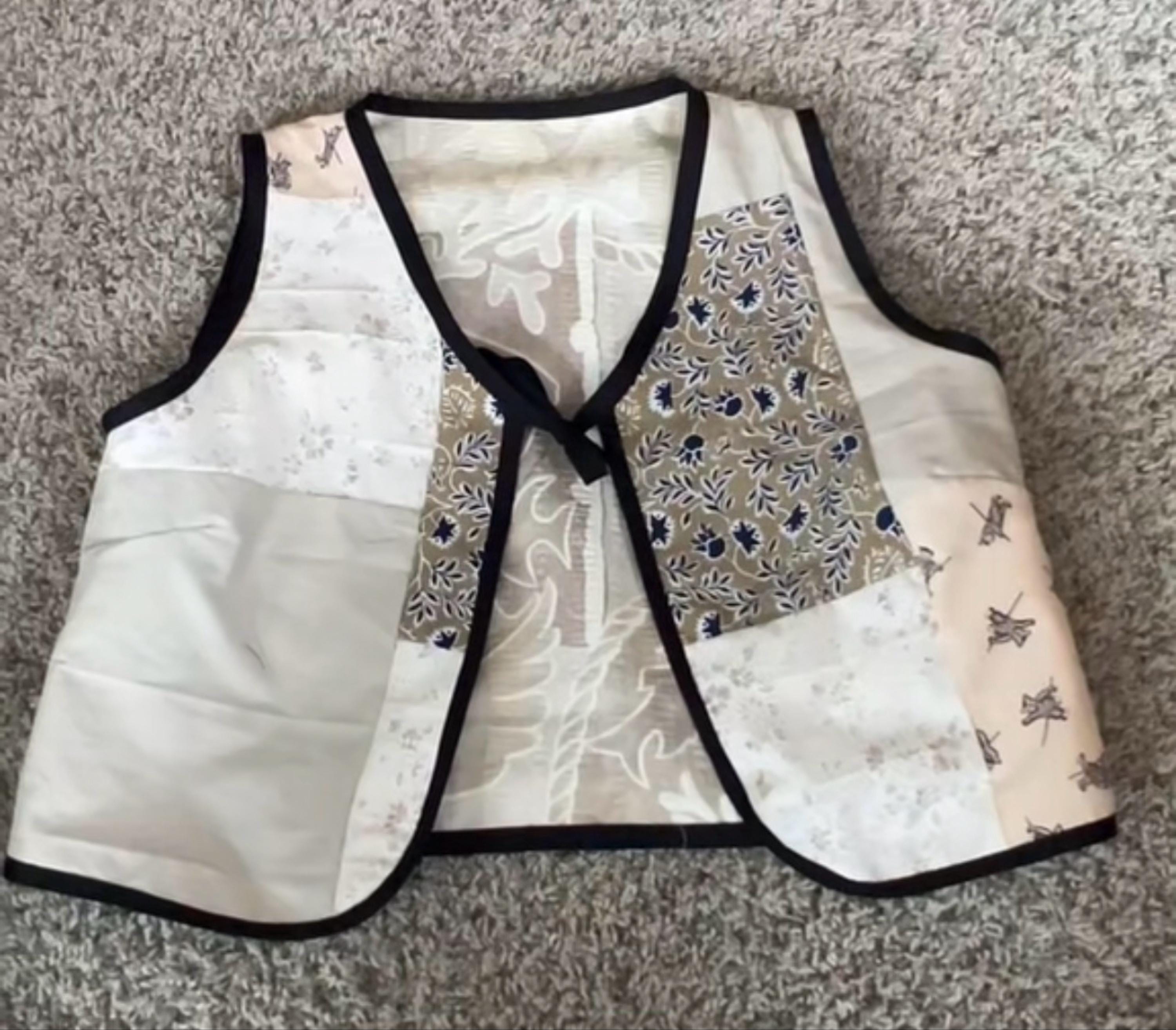 Very simple pattern. I like how the biased tape is the tie on this vest. Fits well. I will be adding length going forward! I also like how this can be reversible.