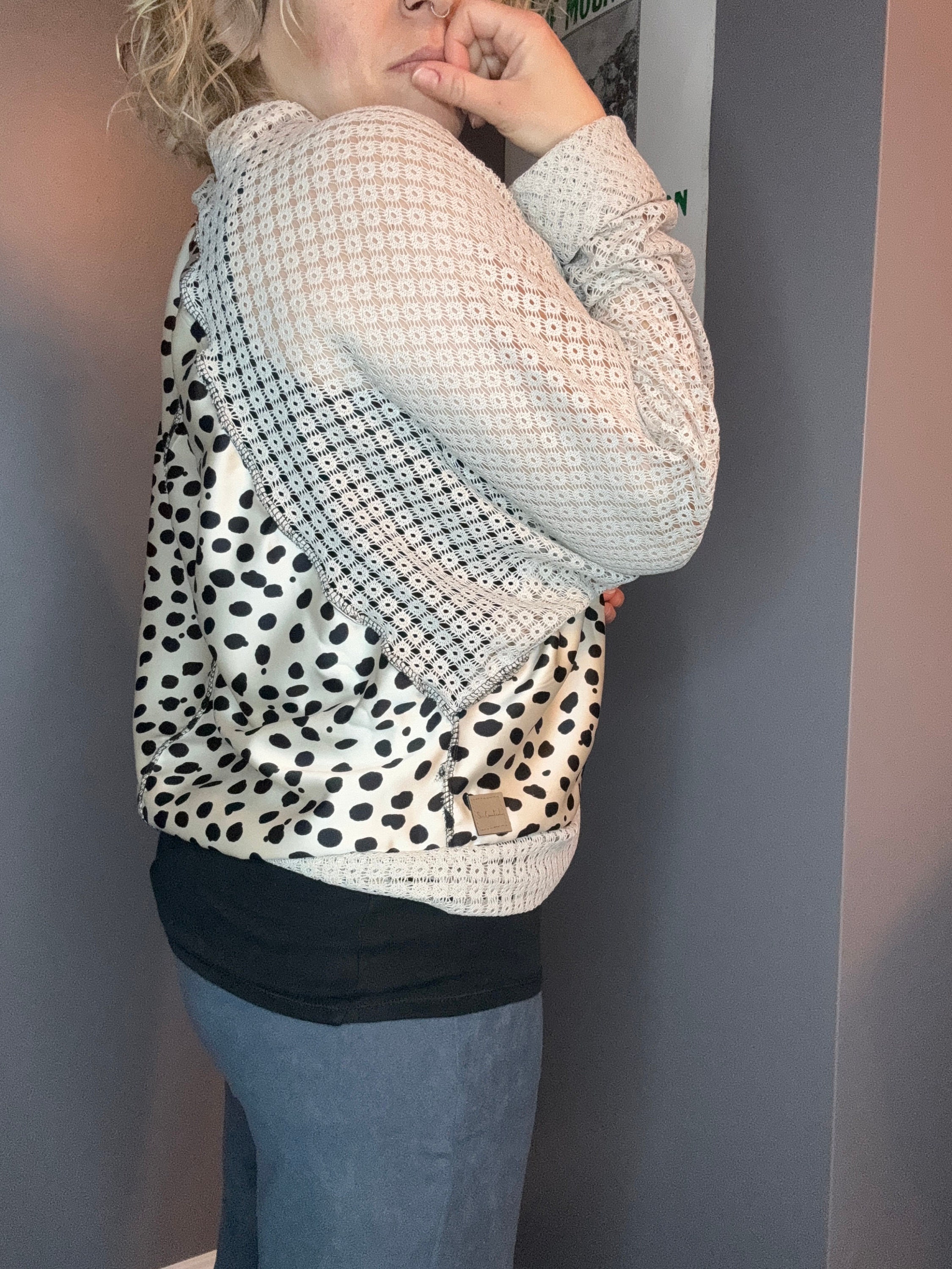 This oversized sweater is not just a fashion statement, it's a cozy and comfortable piece that will make you feel relaxed and at ease. The pattern features an extra-long puffy sleeve design, with the option of regular or oversized cuffs, decorated outside seams, and a cropped bodice length that sits on the hip bone.
